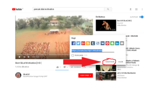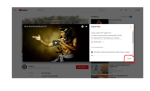 6. Nanti juga akan tampil lagi seperti di bawah ini. Kemudian klik Salin, seperti tanda merah di bawah ini. Dalam langkah ini, kita mengkopi kode html youtube beserta link videonya.