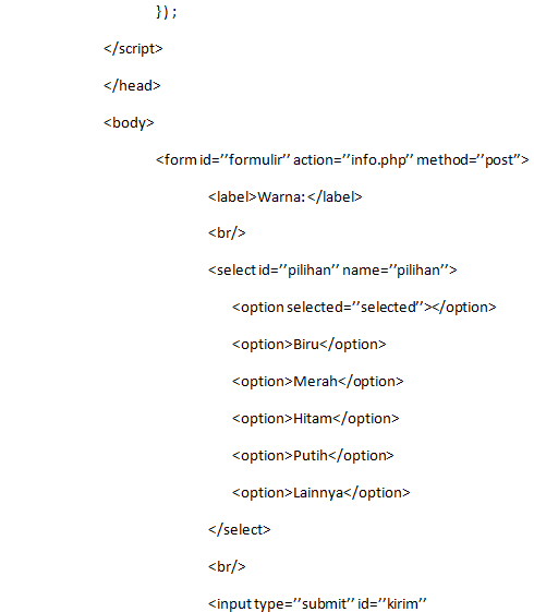 Halo sobat Webhozz berjumpa lagi dengan saya, kali ini saya ingin membagikan artikel mengenai cara memeriksa apakah pilihan dalam select sudah dipilih pada jQuery. Agar sobat Webhozz tidak bingung langsung aja yuk kita masuk ke pembahasan artikelnya sobat Webhozz.