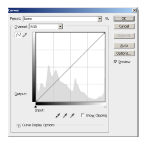 2. Klik menu Image>Curves, atau pintas keyboardnya Ctrl+M. Nanti akan tampil menu berbentuk grafik seperti di bawah ini.