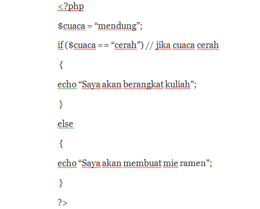 Argument IF dan Else apabila digunakan secara bersamaan maka akan dapat menghasilkan dua statement. Jika if itu hanya dapat menghasilkan satu statement saja, maka IF dan Else akan menghasilkan 2 opsi statement pada satu kondisi. Dalam kehidupan nyata jika sobat Webhozz mengalami suatu kondisi maka akan terdapat beberapa opsi, contoh nyatanya adalah sebagai berikut :