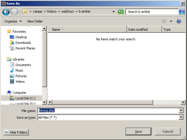 Yang pertama, kita buat file baru. Disini saya membuatnya dengan nama hitung.php.
